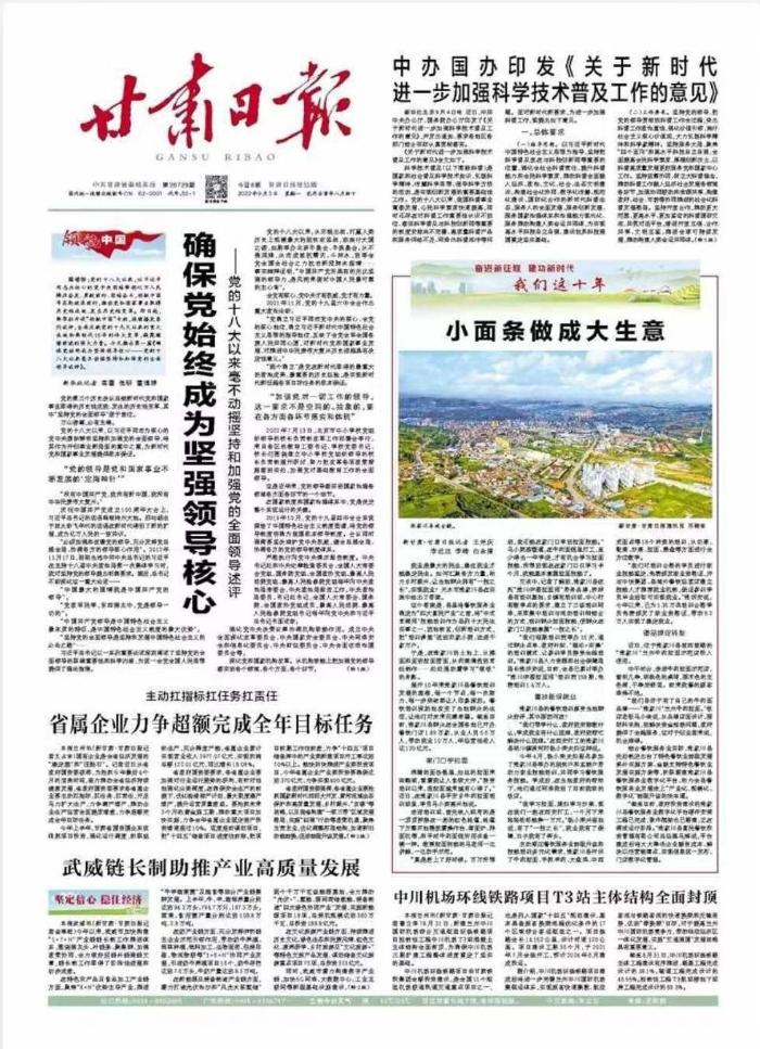 (新甘肃·甘肃日报记者 王光庆 李近远 李峰 白永萍)
