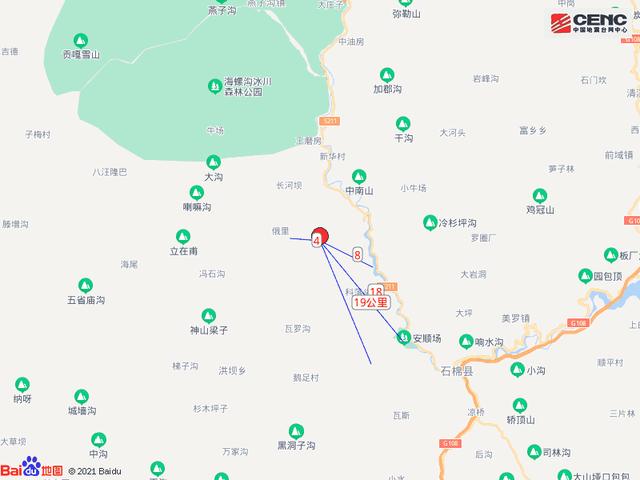 四川雅安市石棉县发生4.2级地震