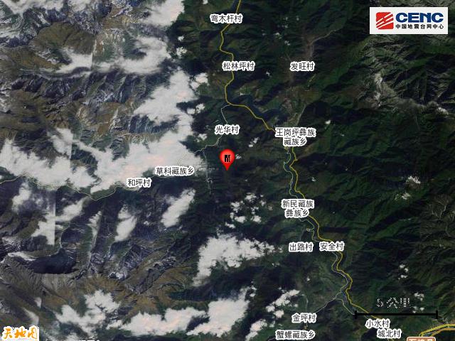 震中5公里范围内平均海拔约2125米。