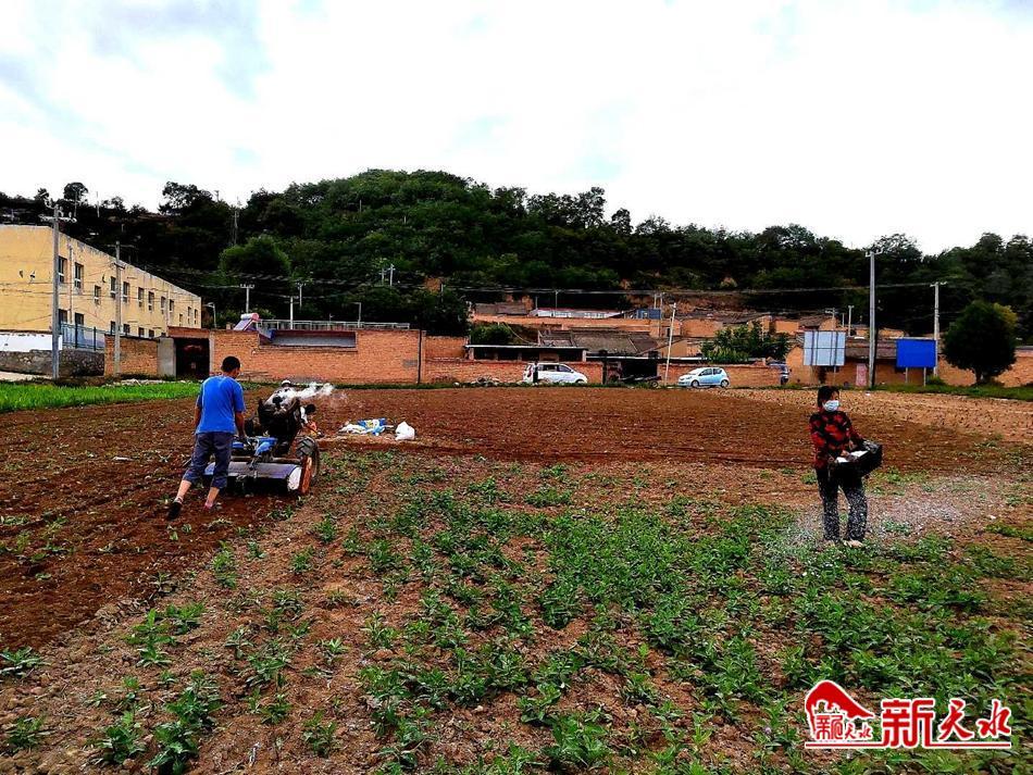9月1日,甘谷县八里湾镇张家坪村村民张代好正在整地施肥,准备秋播工作。今年,八里湾镇计划在张家坪村、上岔、咀头、红土坡种植小麦高产高效示范田3000亩,镇上正在多方筹措物资,确保粮食生产安全责任落到实处。