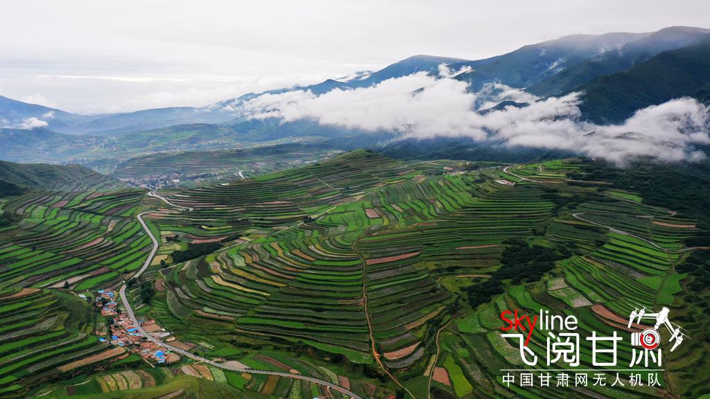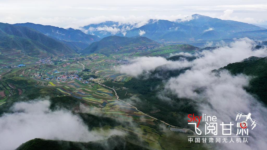 白露将至,位于榆中县马坡乡的分水岭,青山环绕,梯田阡陌交错,线条优美,风光旖旎。一阵阵雨过后,梯田云雾缭绕,远处的崇山峻岭、茂林修竹、通村公路和村庄人家若隐若现,为美丽田园增添了些许“仙气”。