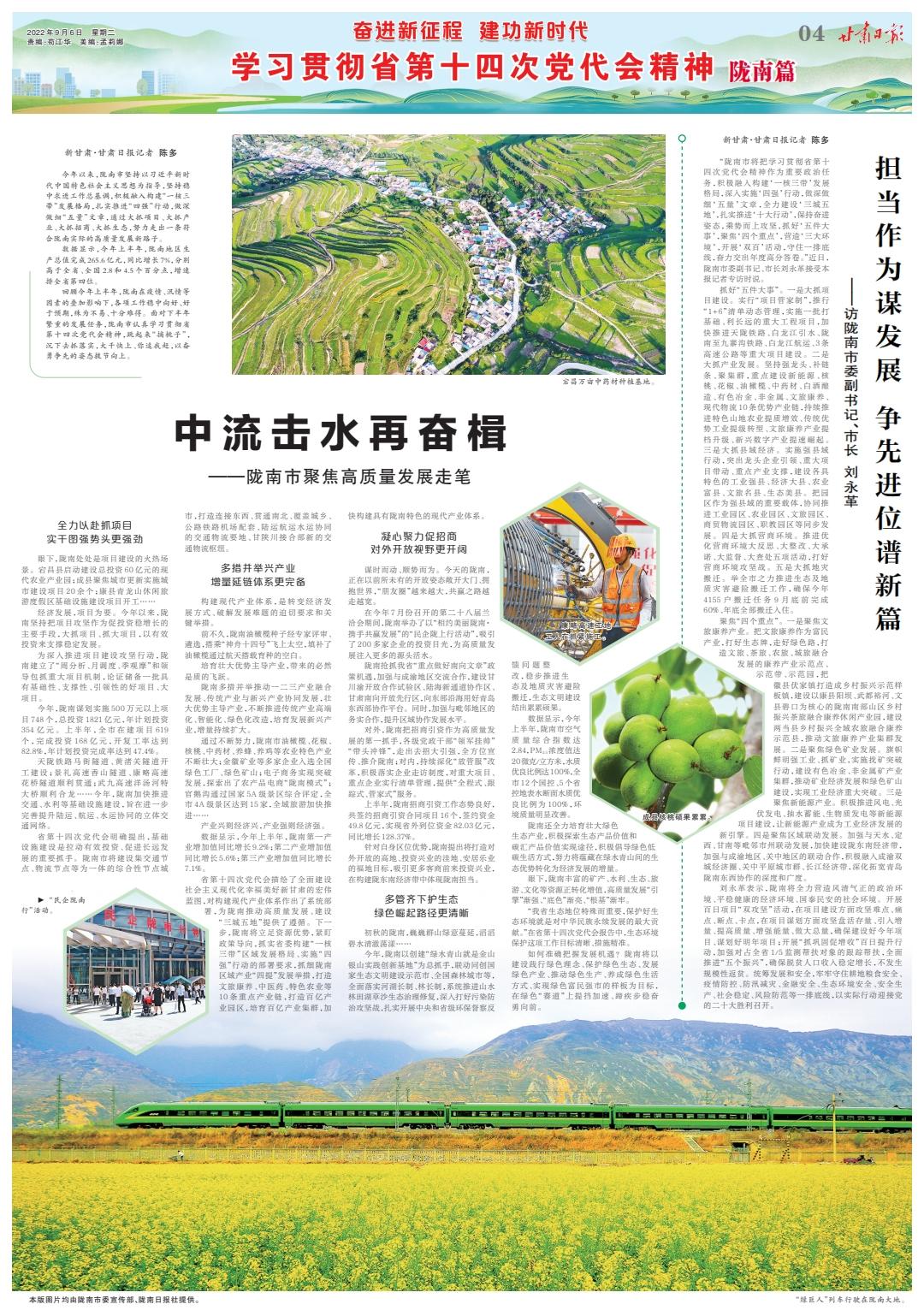 【奋进新征程 建功新时代 学习贯彻省第十四次党代会精神·陇南篇】中流击水再奋楫——陇南市聚焦高质量发展走笔