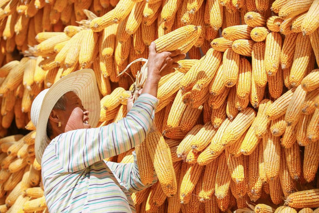 9月5日,湖北省宜昌市秭归县茅坪镇罗家村村民在自家院子晒秋。新华社发(王罡摄)