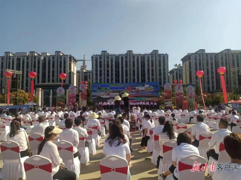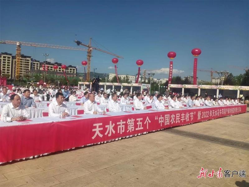 新甘肃客户端麦积讯(新甘肃·甘肃日报记者 白永萍)金秋送爽,硕果迎宾。9月6日下午,由天水市委、市政府主办,天水市麦积区委、区政府和天水市农业农村局承办的2022年“中国农民丰收节”暨天水花牛苹果产销对接宣传推介活动在天水市麦积区开幕。活动现场,50余家外地客商现场签约订货,总签约金额达8亿元。当日直播也创下了1003.2万人次同时观看的盛况,“云推荐”让天水花牛苹果搭上了电商“快车”。