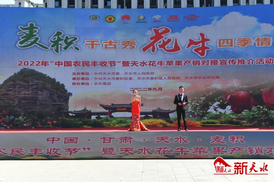 9月6日,由中共天水市委、天水市人民政府主办,中共天水市麦积区委、天水市麦积区人民政府、天水市农业农村局承办,京东集团协办的“麦积千古秀 花牛四季情”——2022年“中国农民丰收节”暨天水花牛苹果产销对接宣传推介活动,在天水市麦积区马跑泉市政广场上火热开启。