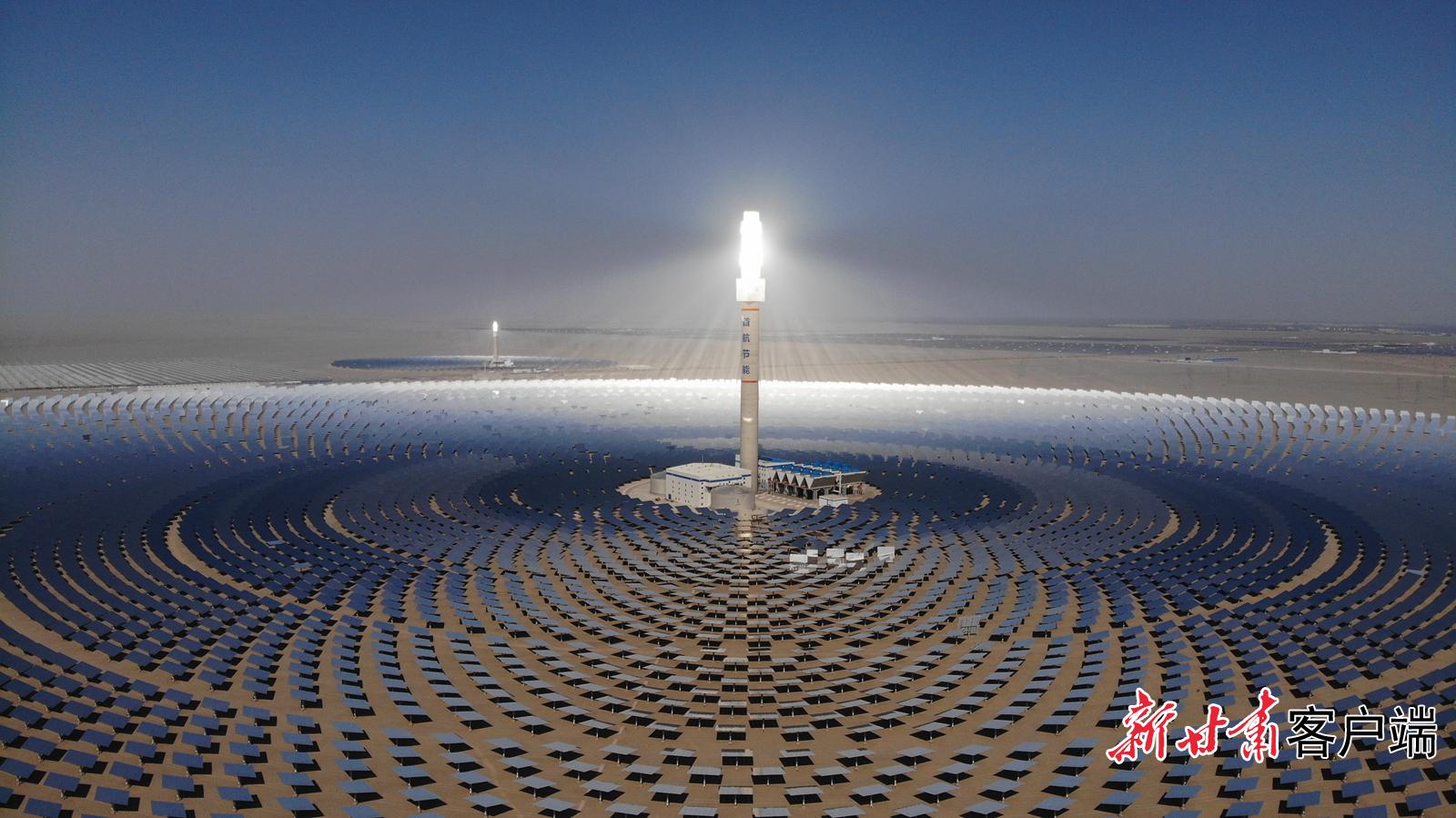 敦煌光电产业园区内100兆瓦熔盐塔式光热发电站。新甘肃·甘肃日报记者通讯员邱亮 摄