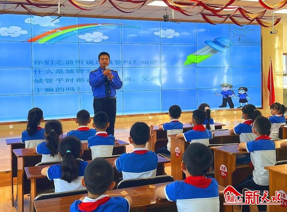 “什么是城管”“行政执法是做什么的呢?”“城市管理工作有哪些?”东关中队执法人员结合图文并茂、浅显易懂、色彩丰富的城市管理知识PPT,引导同学们了解城市管理的工作职责、工作内容和相关法律法规,让同学们认识到城市管理工作的重要性,培养同学们的社会责任感和环境保护意识。同时执法人员宣讲了我市创建全国文明城市相关知识,引发孩子们主动思考和讨论创建文明城市如何从自己做起,从身边小事做起,鼓励大家成为“小城管”,将学到的城市管理知识运用到生活中,自觉维护良好的城市环境,进而影响家长以及更多的人,一起向不文明行为说“不”,同心共创文明城市。