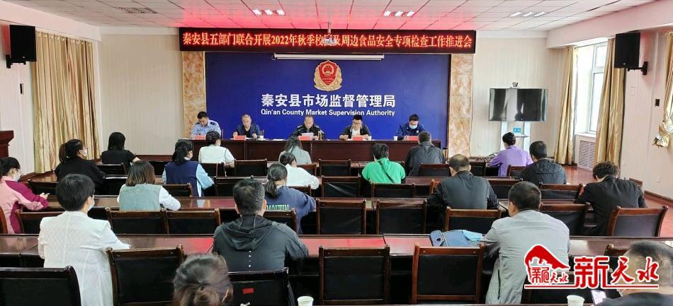 新天水讯【通讯员 王顺芳 】 9月8日,秦安县市场监督管理局、县教育局、县卫健局、县公安局、县消防救援大队等五部门,联合召开2022年秋季开学校园及周边食品安全专项检查推进会,对全县学校及托幼机构食堂食品安全主体责任及学校食品安全工作进行再安排、再部署,切实保障广大师生饮食安全和身体健康。