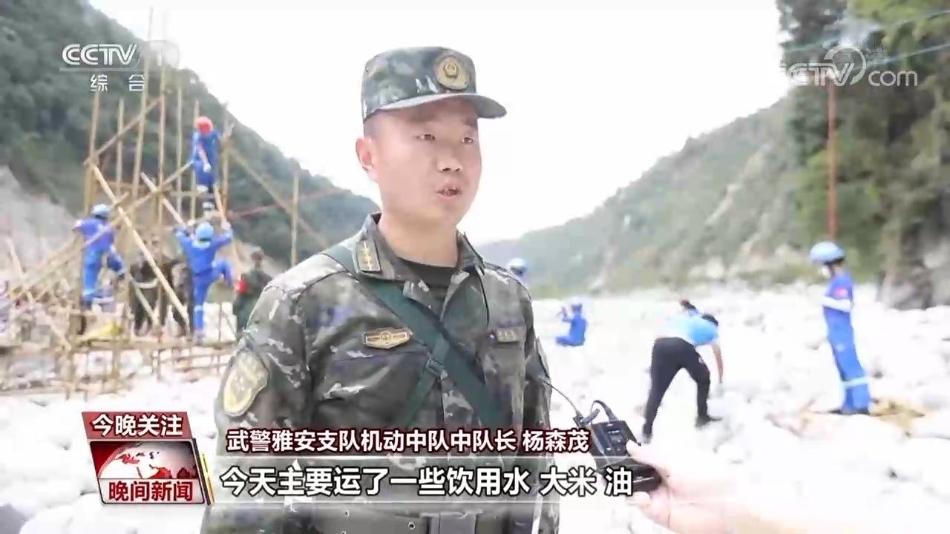 余震阻断道路 消防员搭绳桥翻越垮塌点