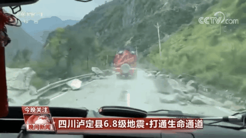 眼前这惊险一幕,发生在9月5日13时10分许,也就是地震刚刚发生后20分钟。当时泸定县消防救援大队的消防员,正在赶赴震中救援的路上,大大小小的落石阻碍着道路。突然间,山上一块巨石砸下来,与前车擦肩而过,万幸没有造成人员伤亡。这一幕也足见地震引起的次生灾害有多严重。