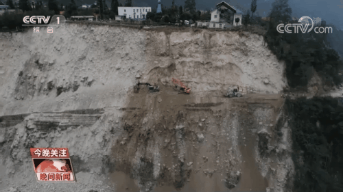 总台记者 韩民权:地震发生之后,这条道路是受损特别严重的,可以看到现场正在下着雨。目前整个交通抢险人员还是投入了6台挖掘机和装载机,进行持续的道路抢通作业。