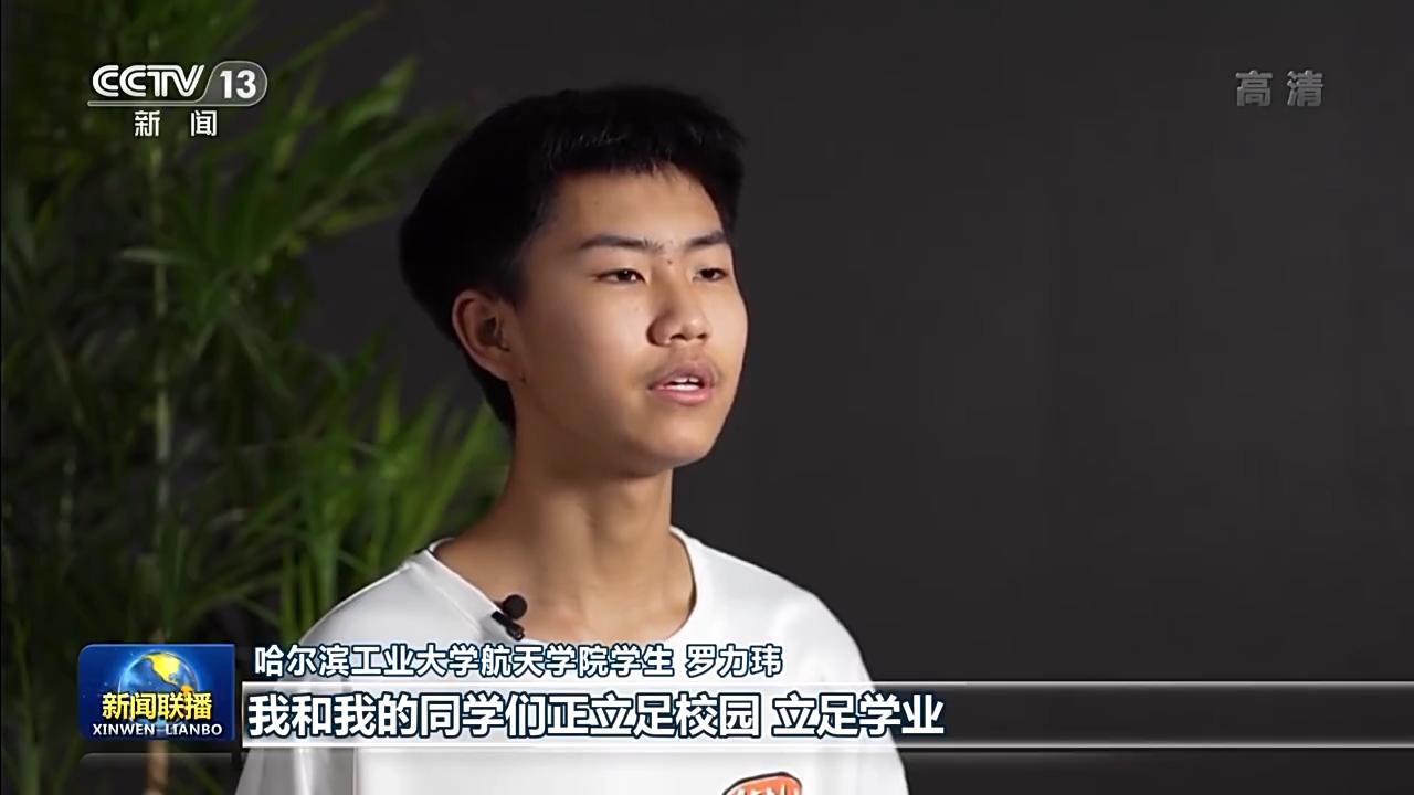 哈尔滨工业大学航天学院学生 罗力玮:我和我的同学们正立足校园,立足学业,时刻准备为祖国航天事业的发展贡献力量,我非常开心,也感到无比自豪。党的二十大即将胜利召开,未来我们还要继续在青春中奋斗,努力参与更多大国重器的建设,用知识报效祖国。