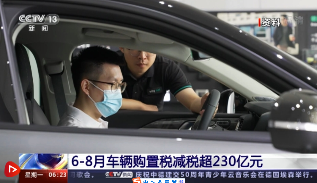 央视网消息:国家税务总局最新数据显示,今年6至8月份,全国约355.3万辆车享受了车辆购置税减征政策,累计减征车购税230.4亿元。