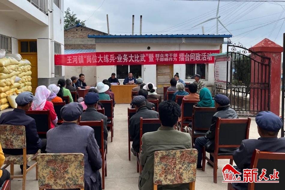 新天水讯【特约通讯员 袁俊杰】9月13日,清水县王河镇党建办、乡村振兴工作站在西李村组织开展“岗位大练兵,业务大比武”暨“群众考干部,干部晒作为”擂台问政活动,进一步改进镇村干部作风,密切党群干群关系,切实提升基层组织服务群众、服务发展的能力水平。