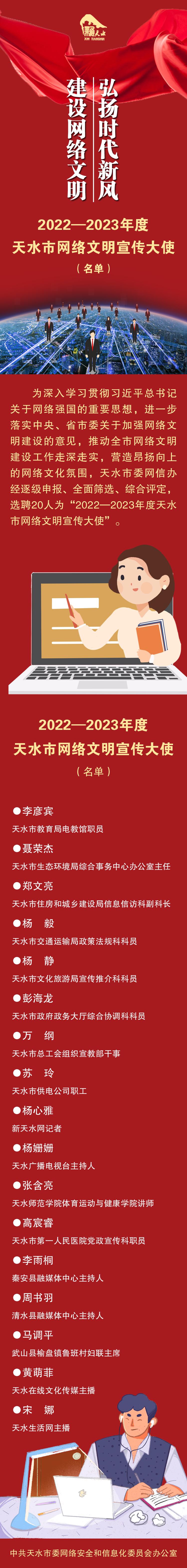 长图 | 2022—2023年度天水市网络文明宣传大使(名单)