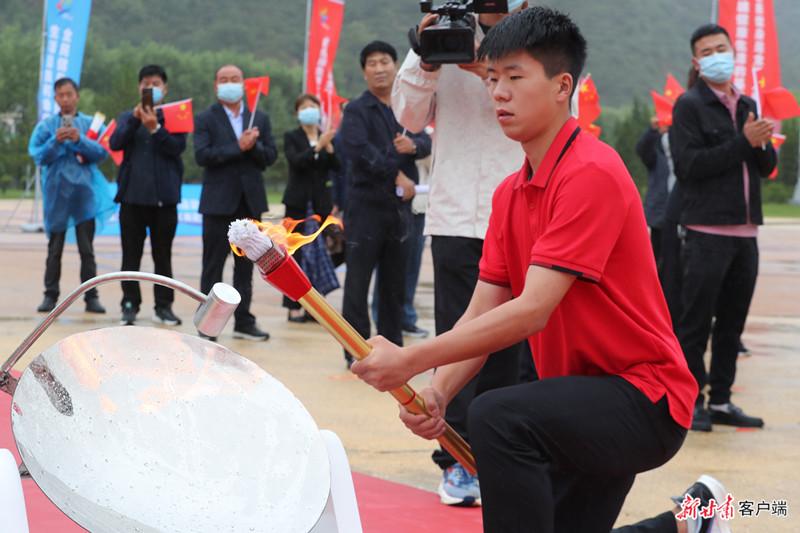 省第十五届运动会跆拳道比赛金牌获得者李佳轩采集本届省运会华池站火种。