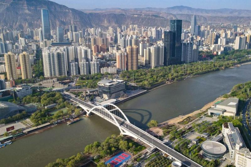 ▲这是4月25日拍摄的黄河干流兰州段景色(无人机照片)。新华社记者 张智敏 摄