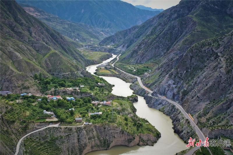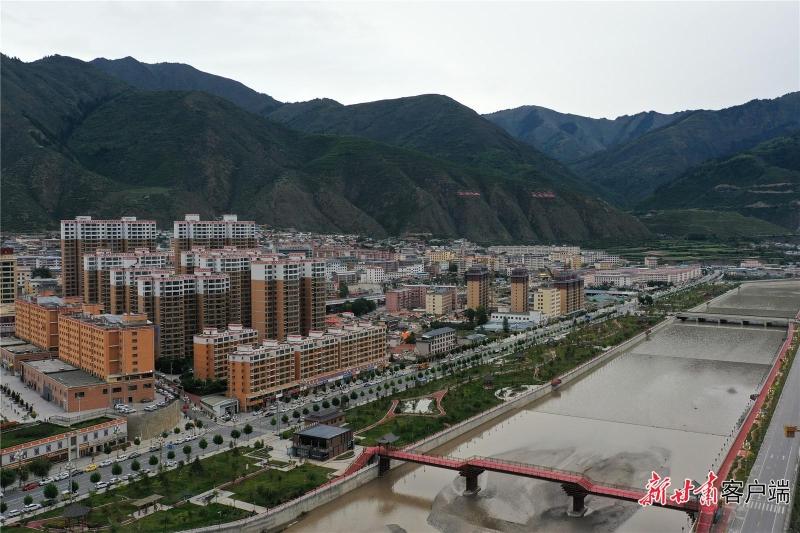 航拍下的迭部县城,两岸绿意正浓,水面偶尔翻起浪花——这是白龙江流域城市的缩影。