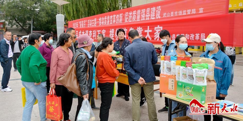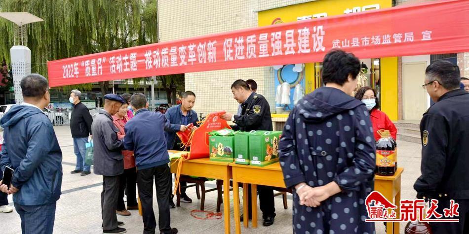 新天水讯 日前,武山县质量发展领导小组办公室组织各成员单位在武山县宁远广场开展主题为“推动质量变革创新 促进质量强国建设”宣传活动。