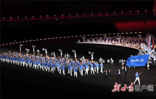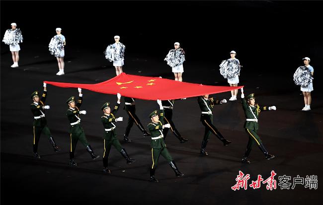 兰州奥体中心体育场,华灯璀璨、流光溢彩。20时整,开幕式正式开始。在《歌唱祖国》的悠扬旋律中,鲜艳的五星红旗在仪仗队护卫下进入会场。随后,甘肃省运动会会旗、省第十五届运动会会旗以及裁判员、各参赛代表团依次入场。