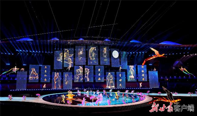 借助多媒体技术和声光电手段,开幕式文艺演出《丝路新画卷阔步新征程》精彩上演。整场演出共分《华夏血脉日月经天》《青山绿水大美陇上》《厚积薄发开创未来》三个篇章。