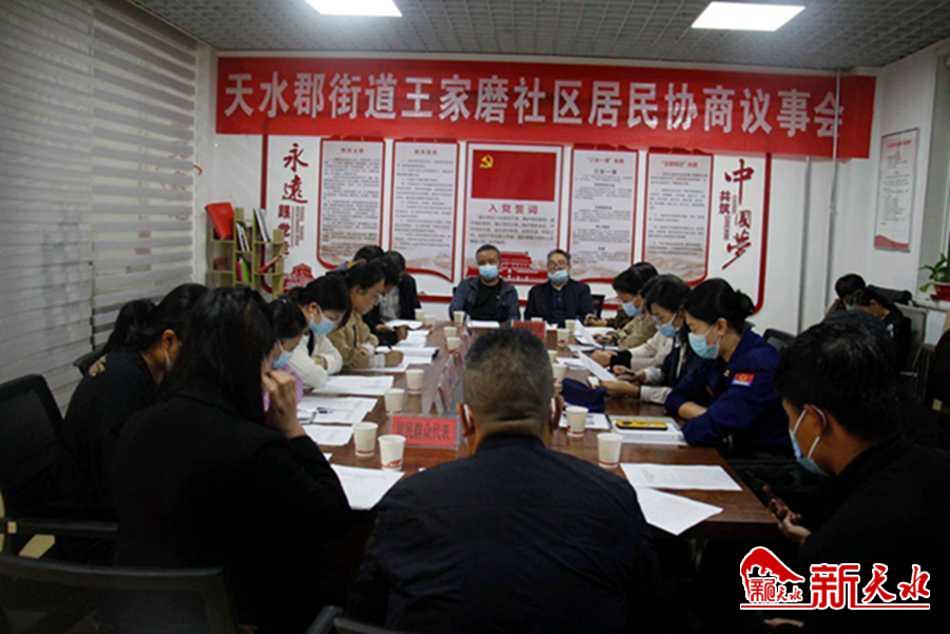新天水讯 9月16日下午,天水郡街道王家磨社区在安民小区党支部会议室就“普查队家属院小区在老旧小区改造中关于充电设备安装位置”等事宜召开居民协商议事会议进行民主协商。社区议事会成员(社区三委班子成员、辖区党代表、区人大代表、下沉街道政协委员)涉事群体代表、普查队家属院小区居民代表、街道法律顾问、秦州区消防大队防火参谋、老旧小区改造施工方代表等23人参会。