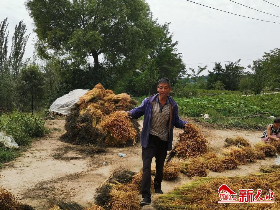 9月20日,武山县咀头乡管山村村民在打谷场准备碾胡麻。近年来,咀头乡因地制宜,把油料作物种植作为富民产业培育的亮点来抓,大力发展胡麻种植产业,助力乡村振兴。