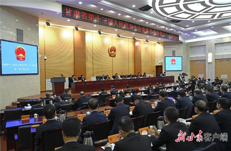 会议听取了关于《甘肃省奖励和保护见义勇为人员条例(修订草案)》《甘肃省会计管理条例(修订草案)》《甘肃省农业机械管理条例(修订草案)》《甘肃省档案条例(修订草案)》《甘肃省实施〈中华人民共和国体育法〉办法(修订草案)》《甘肃省实施〈中华人民共和国工会法〉办法(修订草案)》《甘肃省职工代表大会条例(修订草案)》《甘肃省公众参与制定地方性法规办法(修订草案)》修改情况的报告;听取了关于《甘肃省预算审批监督条例(修订草案)》《甘肃省边境管理条例(修订草案)》《甘肃省邮政条例(修订草案)》《甘肃省专利条例(修订草案)》《甘肃省义务教育条例(修订草案)》《甘肃省安全生产条例(修订草案)》的说明;听取了关于《张掖市文明行为促进条例》《武威市文明行为促进条例》《平凉市养犬管理条例》《陇南市养犬管理条例》《定西市城镇供热用热条例》《甘南藏族自治州住宅物业管理条例》的说明。