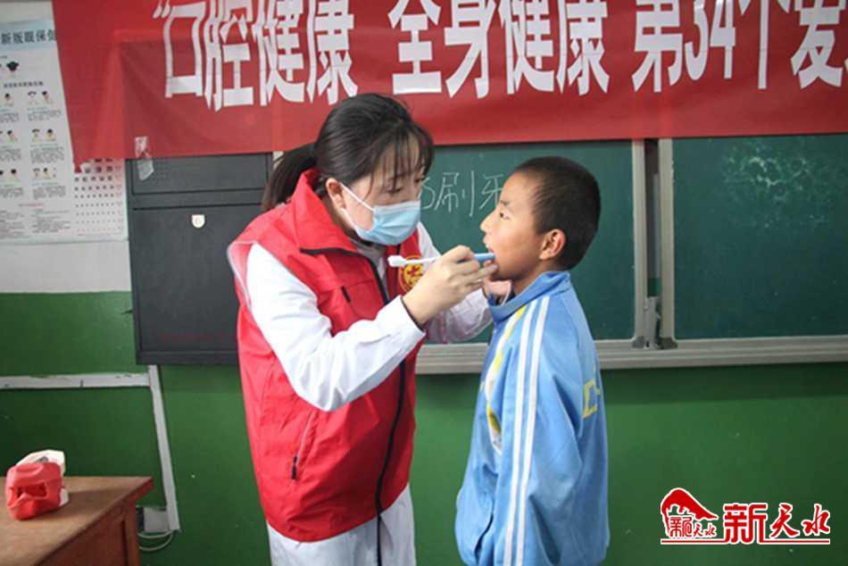 新天水讯【通讯员 王峡弟】 9月20日是第34个“全国爱牙日”,宣传主题是“口腔健康 全身健康”,为加大口腔健康科普宣传力度,重点关注青少年口腔保健,普及口腔健康相关知识,9月19日,甘谷县卫健局、县红十字会联合安远镇中心卫生院赴该镇店子小学开展了以“口腔健康 全身健康”为主题的宣传服务活动。