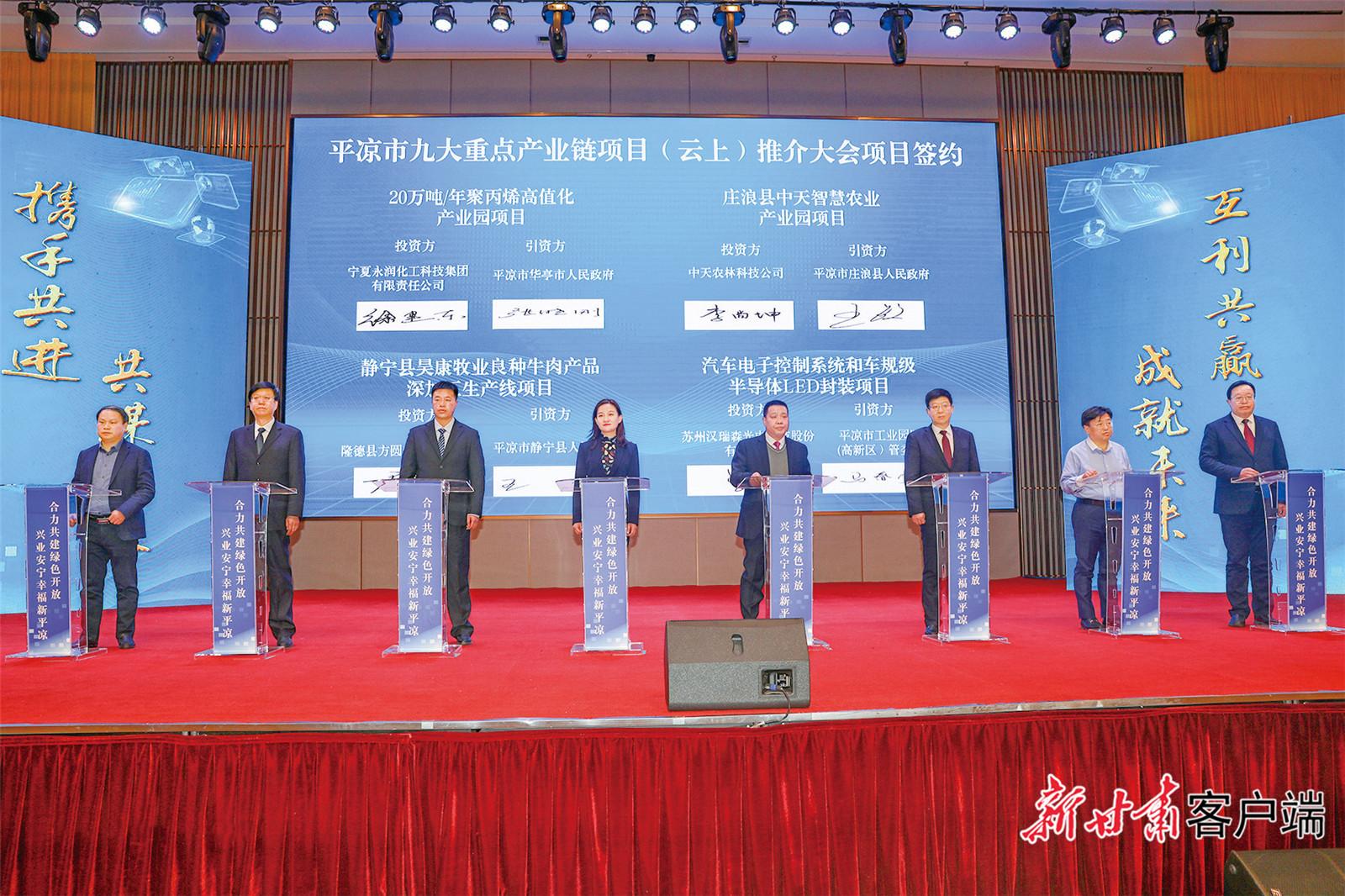 1月13日,平凉市举行九大重点产业链项目(云上)推介大会,共签约项目124个,签约额585亿元。 新甘肃·甘肃日报通讯员 姚志强