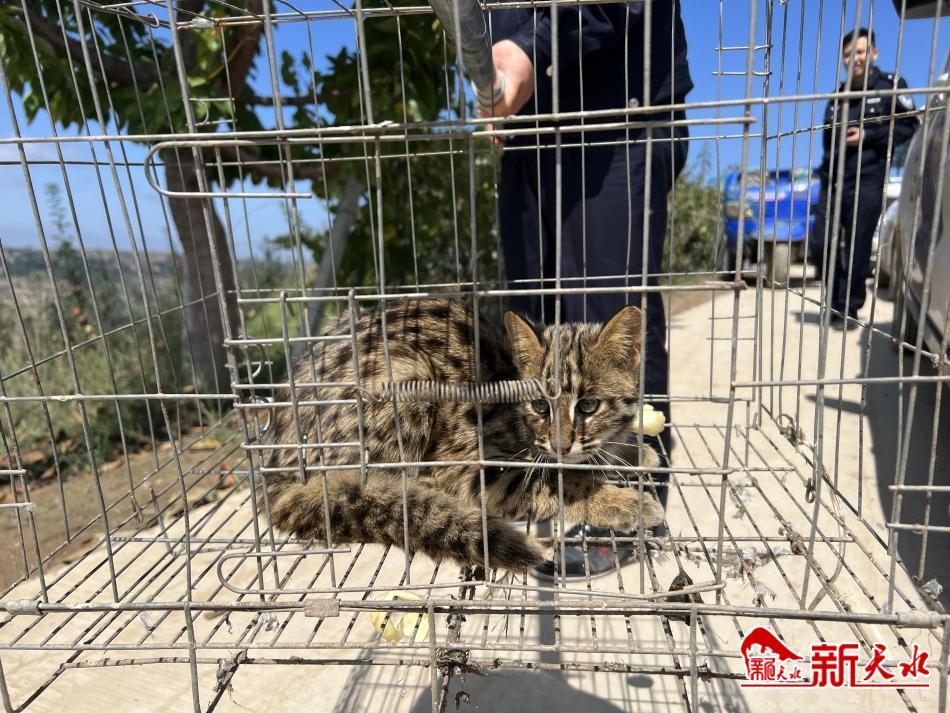 新天水讯【记者张彬霞】9月21日上午,秦安县公安局五营派出所及时救助一只国家二级保护动物“豹猫”,并将其放生于栖息地。