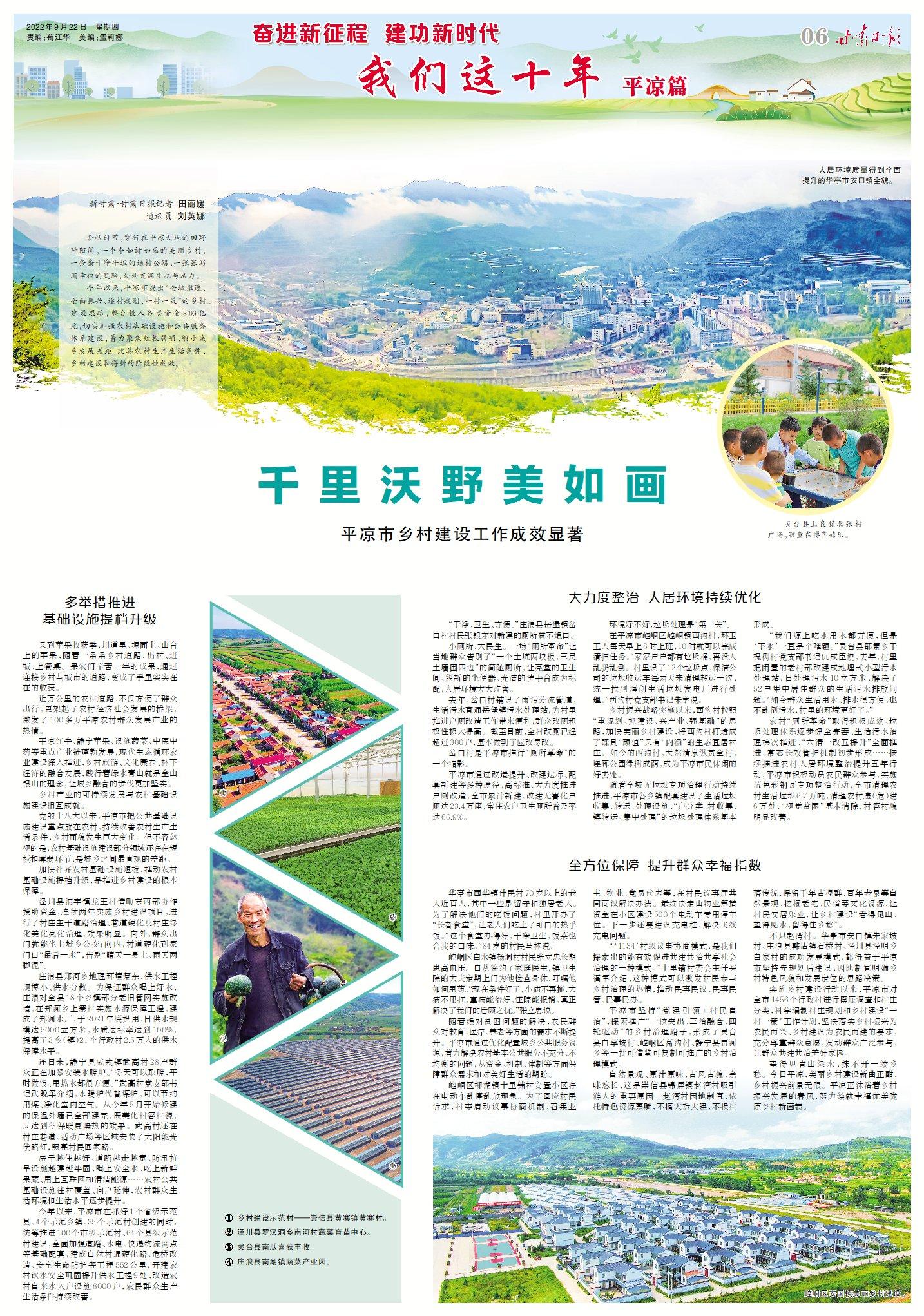 【我们这十年】千里沃野美如画 平凉市乡村建设工作成效显著
