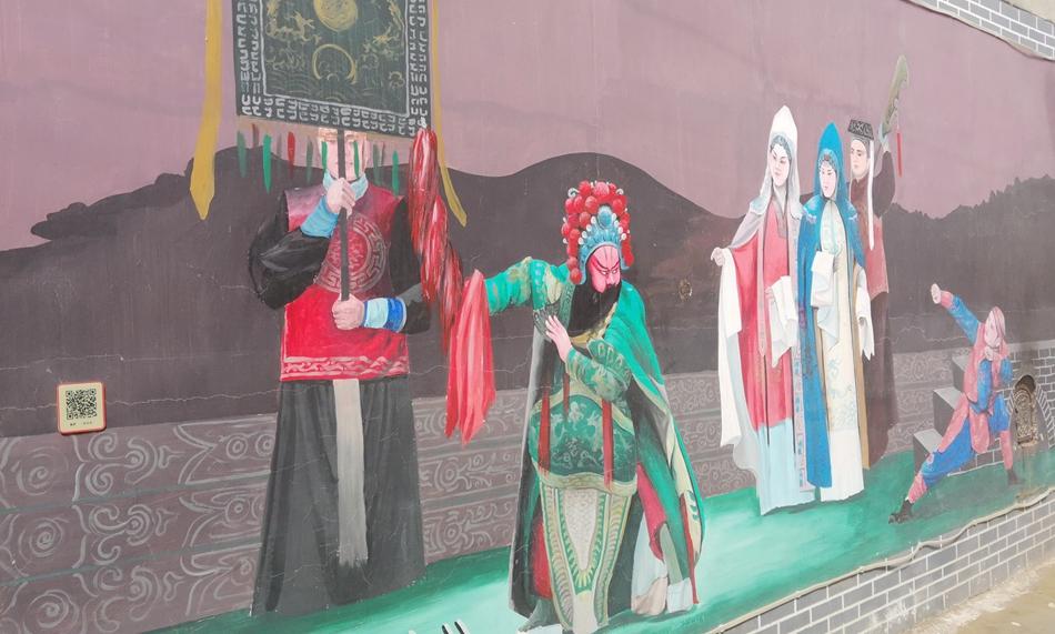 近日,记者在牌楼村看到,房前屋后、巷道墙壁、烟囱窗檐,只要是有空余的空壁面上都绘满了各式各样的秦腔壁画,《铡美案》《三滴血》《周仁回府》《杨门女将》等秦腔名段应有尽有。不仅如此,每一面秦腔壁画一角还设置了二维码,村民们可以通过扫码获取音频"听戏",如此一来,秦腔经典当中的"忠义""担当""刚正不阿""孝道礼义"在牌楼村的每一面墙壁上重新焕发出教化育人的光彩,使得牌楼村在乡村振兴之路上民风更淳朴、乡风更文明。这无疑是推进农村文化振兴的创新举措,让乡村百姓受到了丰盛的戏曲文化滋养。