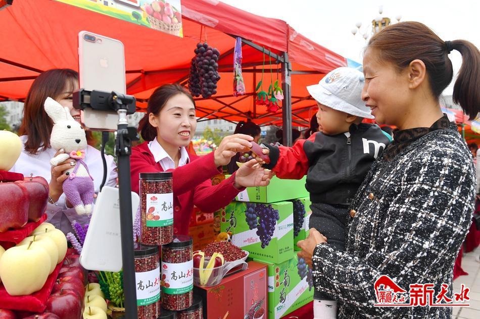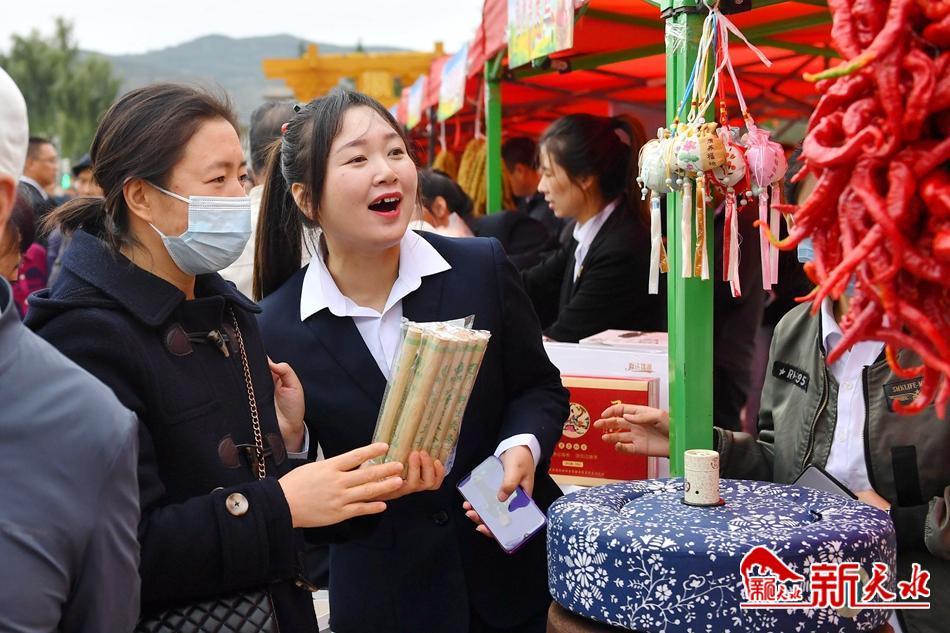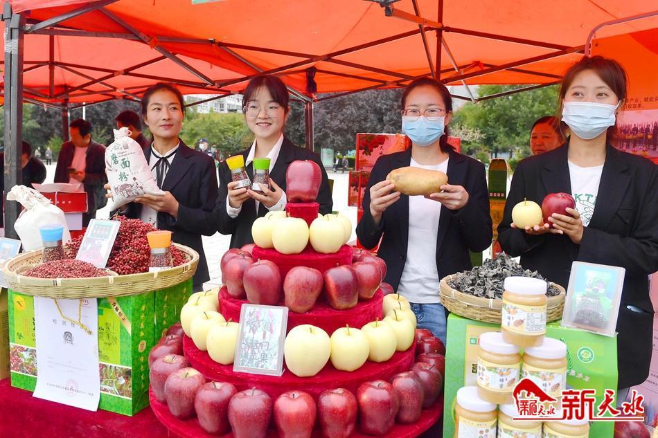 广场四周的展棚里,各类蔬菜、各色水果等特色农产品依次排列,火红的辣椒、金灿灿的玉米组成的“五谷丰登”格外喜庆。颗粒饱满、麻中蕴香的花椒以及胡麻油、黑木耳、土蜂蜜、粮食醋、中药材产品、康养产品等地方特色产品琳琅满目,吸引广大市民和客商前来品鉴。当地网红达人也忙着在各自的直播平台倾情推荐当地的特色产品,与各地粉丝互动交流,接收源源不断的订单……