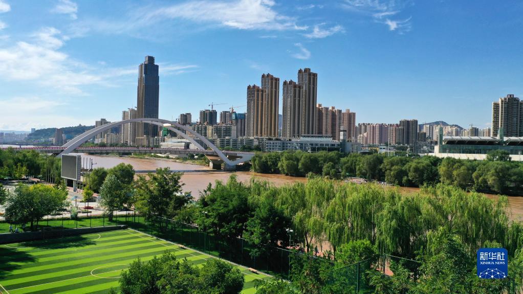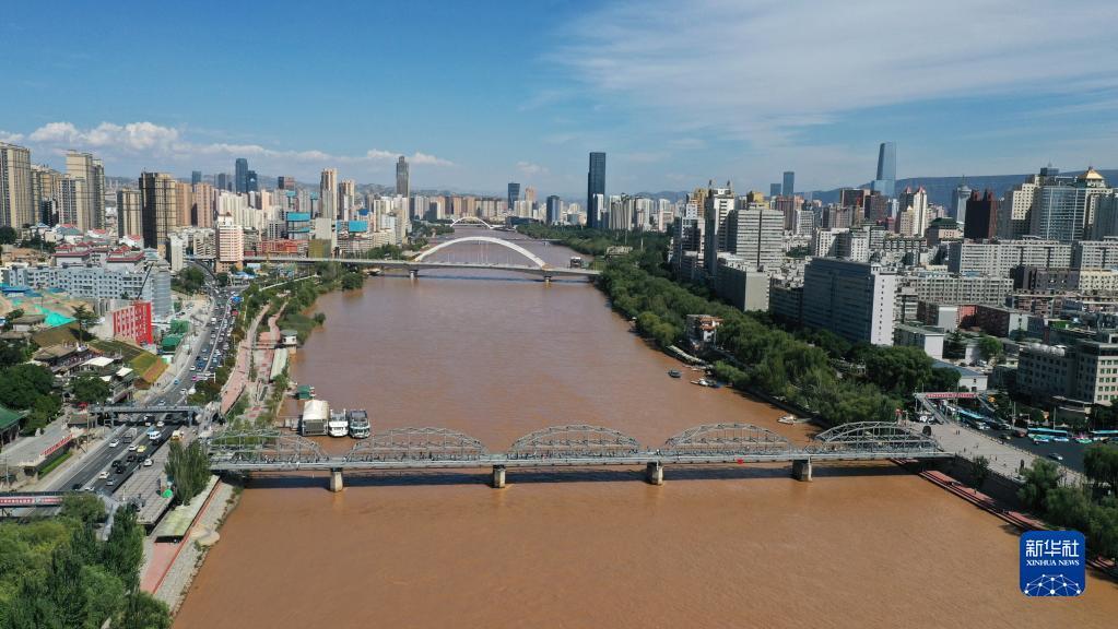 这是黄河兰州段城市风光(2022年9月5日摄,无人机照片)。新华社记者 陈斌 摄