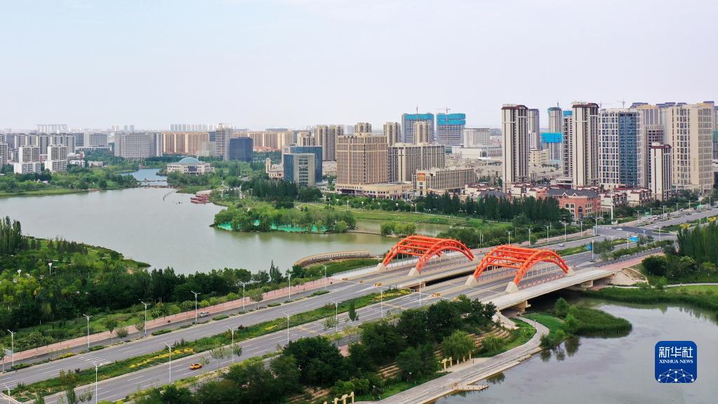 这是我国西北地区首个国家级新区兰州新区城市面貌(2022年8月10日摄,无人机照片)。新华社记者 陈斌 摄