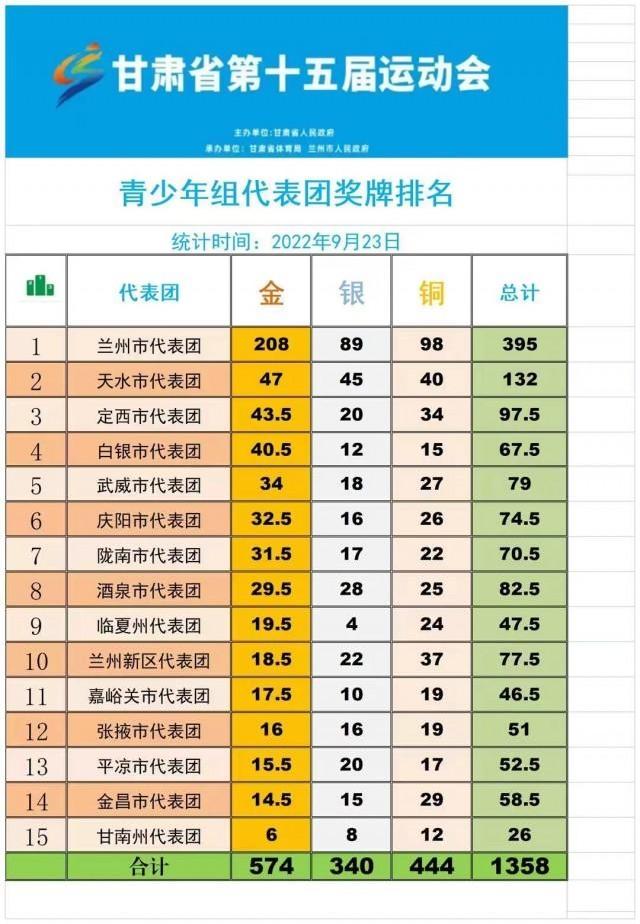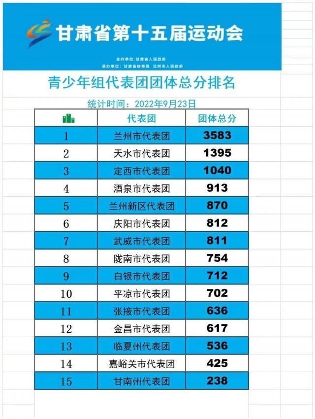 喜讯:甘肃省第15届运动会天水金牌榜、奖牌榜、团体总分排名全省第二!