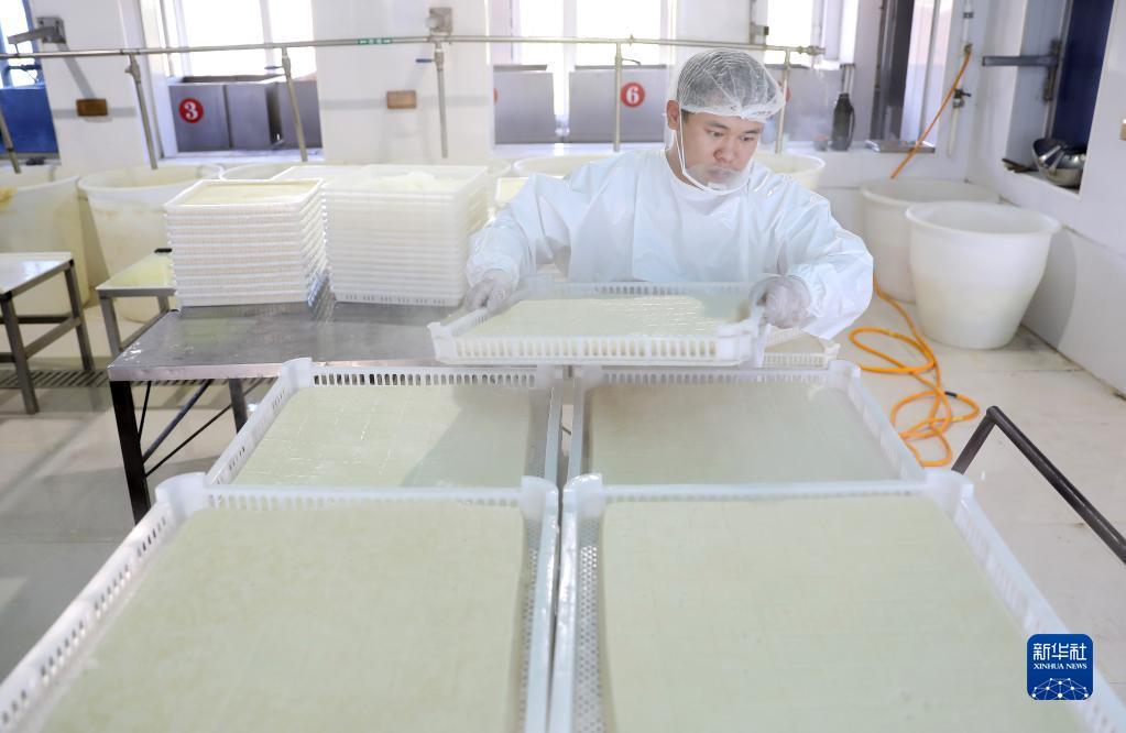 9月19日,工人在昌图红瑞食品酿造有限公司豆腐生产车间内工作。新华社记者 姚剑锋 摄