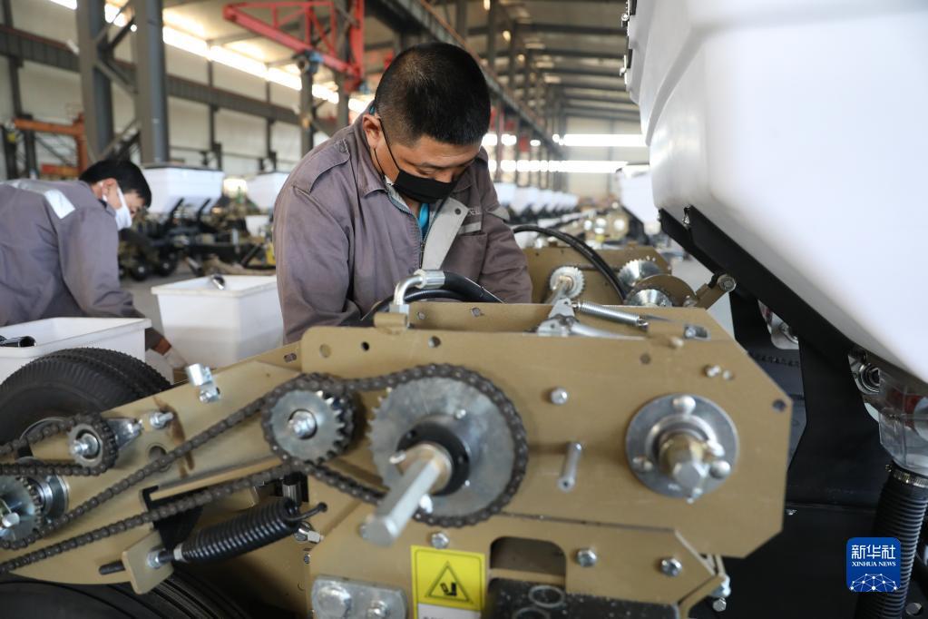 9月19日,工人在中科农业(昌图)有限公司车间内组装免耕播种机。新华社记者 姚剑锋 摄