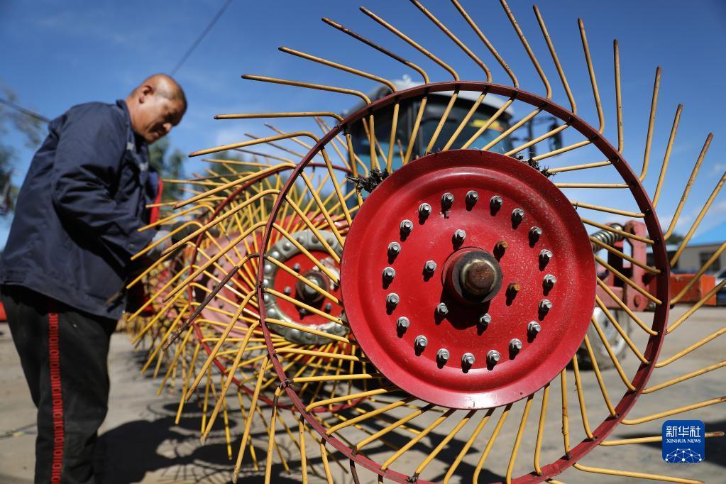 9月19日,在昌图盛泰农机合作社内,工人对农机具进行维修。新华社记者 姚剑锋 摄