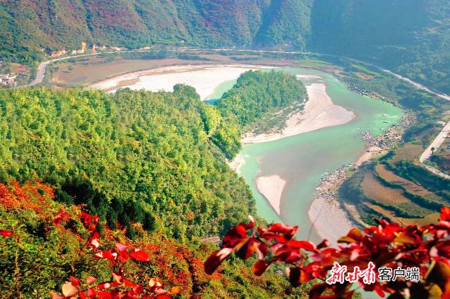 初秋,徽县境内的嘉陵江峡谷中连绵的山拱围着碧绿的水,碧绿的水倒映着连绵的山,空中云雾迷蒙,山间绿树红花,荡舟于嘉陵江之上,仿佛走进了连绵不断的画卷。
