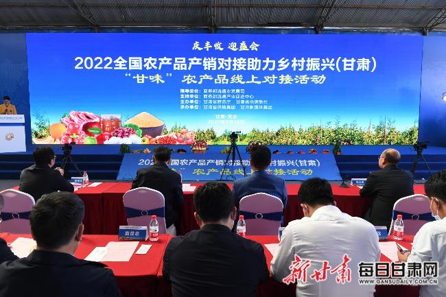 每日甘肃网讯(新甘肃·每日甘肃网见习记者 马腾飞)9月28日下午,甘肃省商务厅、甘肃省供销联社联合主办的2022全国农产品产销对接助力乡村振兴(甘肃)——“甘味”农产品线上对接活动,在天水市麦积区花牛苹果南山万亩基地举办。活动以“主会场+分会场+云端连线”的方式,让甘肃农产品生产流通企业与省外客商进行云端产销对接,线上达成农产品销售协议及合作意向5.36亿元。
