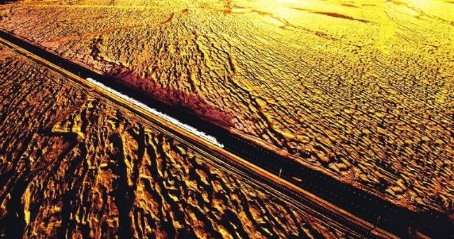 动车穿越敦煌铁路雅丹地貌区