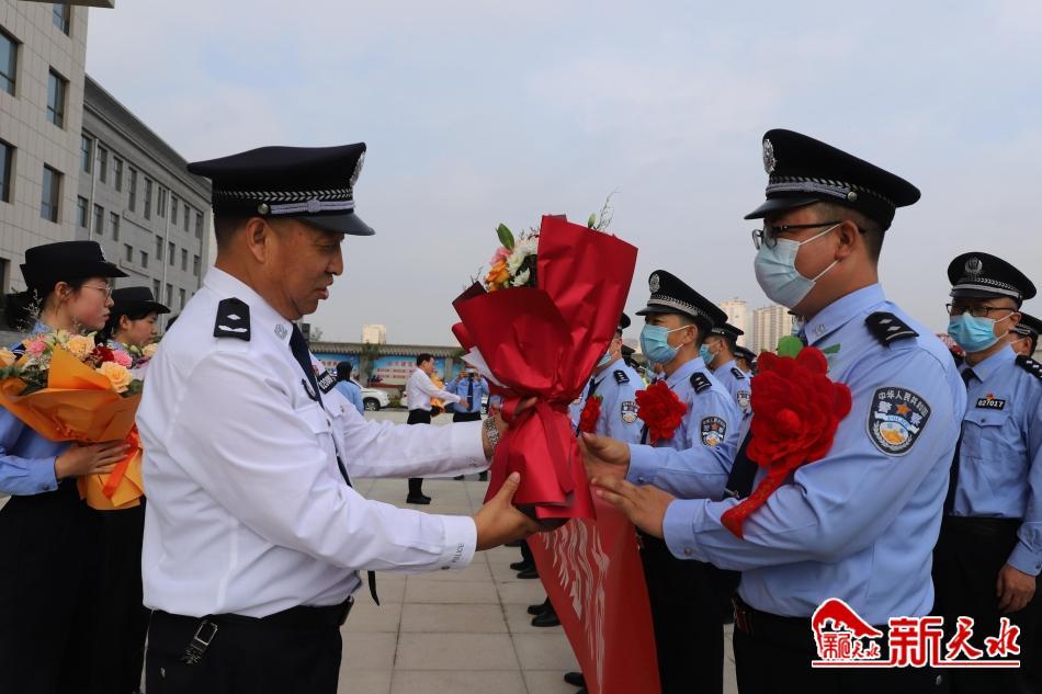 新天水讯【记者蔚军平】9月30日,甘谷县公安局举行仪式,欢迎“7•07”跨境网络赌博专案组凯旋,为专案组民警送上鲜花并表示祝贺,对参战民警勇于担当、连续作战、攻坚克难的辛勤付出表示肯定和慰问。