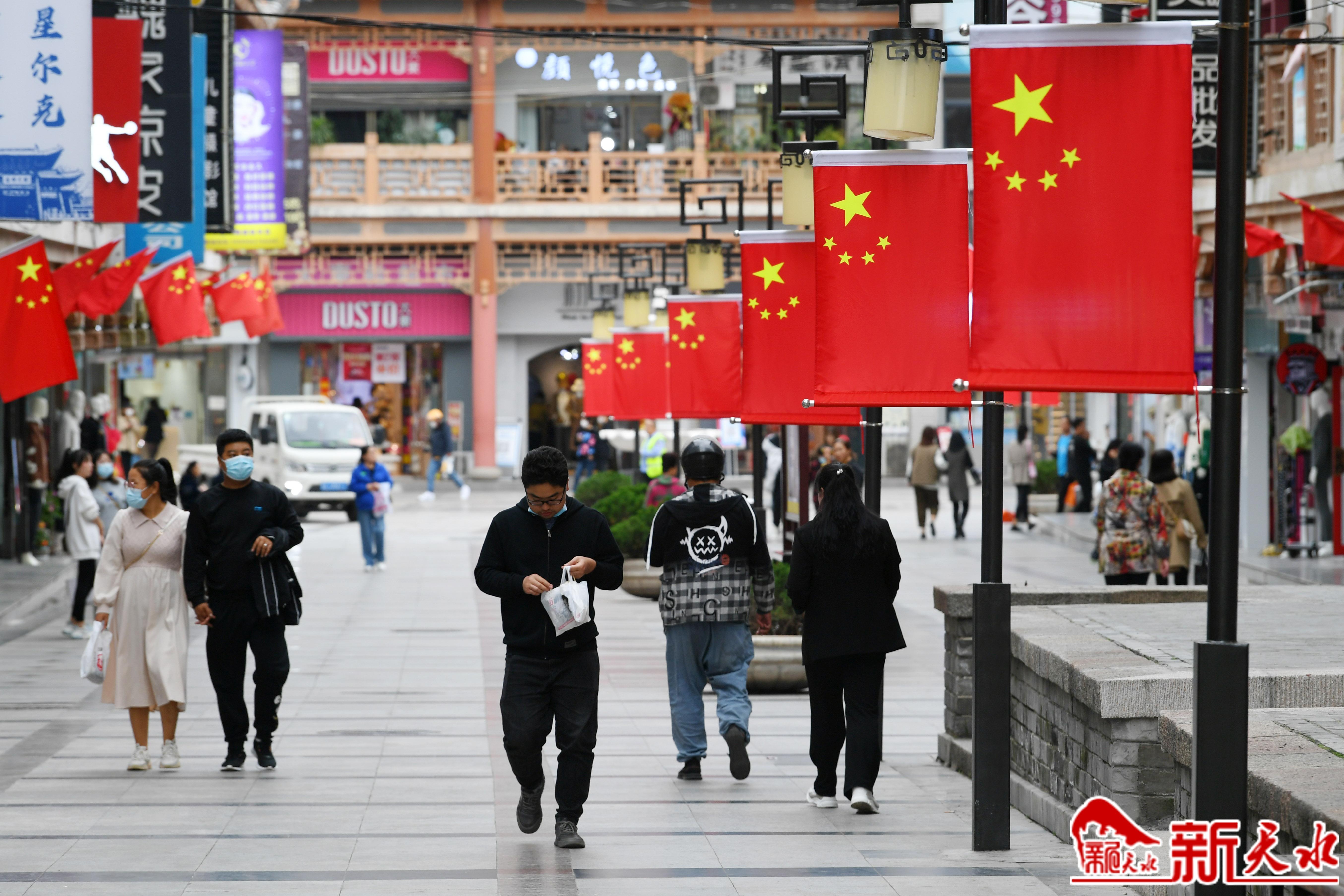 盛装庆国庆 满城飘扬“中国红”
