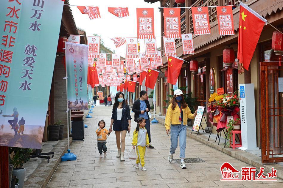 10月1日,国庆假期第一天,天水市民走进伏羲城,游览伏羲庙,感受天水历史文化;游逛西关古城,参与天水市非遗购物节活动,选购地方特色文创产品,过一个文化味十足的欢乐假日。