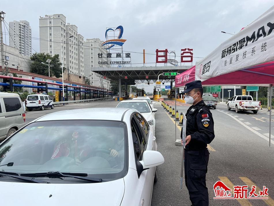 甘谷高速卡口也是外防输入的重要关口。十一国庆假期,甘谷高速口作为车流量较大的高速出入口,甘谷特警执勤人员严格落实《新型冠状病毒肺炎防控方案(第九版)》疫情防控相关措施,严格执行“一扫一测”“三查一问”落地采、落地控、分类管、闭环运、“3+2”等措施,确保“不漏一车、不漏一人”,做到疫情防控不“放假”。