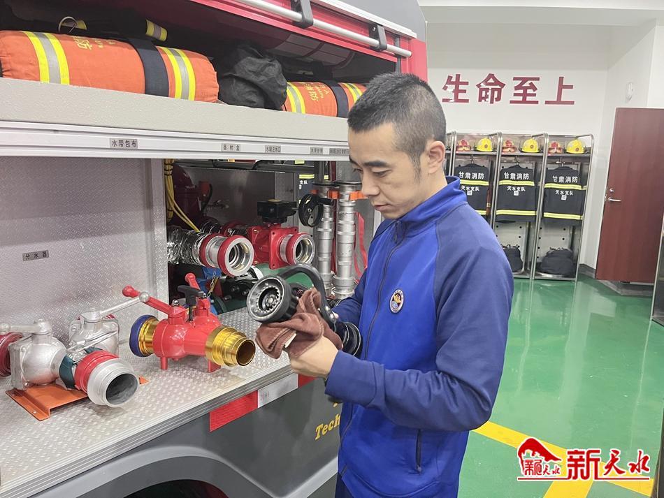 10月2日,在天水市消防救援支队新华路特勤站,指导员马亮与40多名消防指战员依然处于24小时执勤备战状态。今年是马亮从事消防工作的第12个年头,国庆节假期放弃休息坚守岗位对于他来说已经习以为常,更何况是“特勤消防”的一员,所谓特勤,就是别人灭不了的火他们要去灭,救不了的人他们要去救,既是尖刀也是后盾,在装备配置上更加齐全和精良,在技术上更加全面和过硬,这也是马亮和队友们肩负责任和使命的特殊之处。
