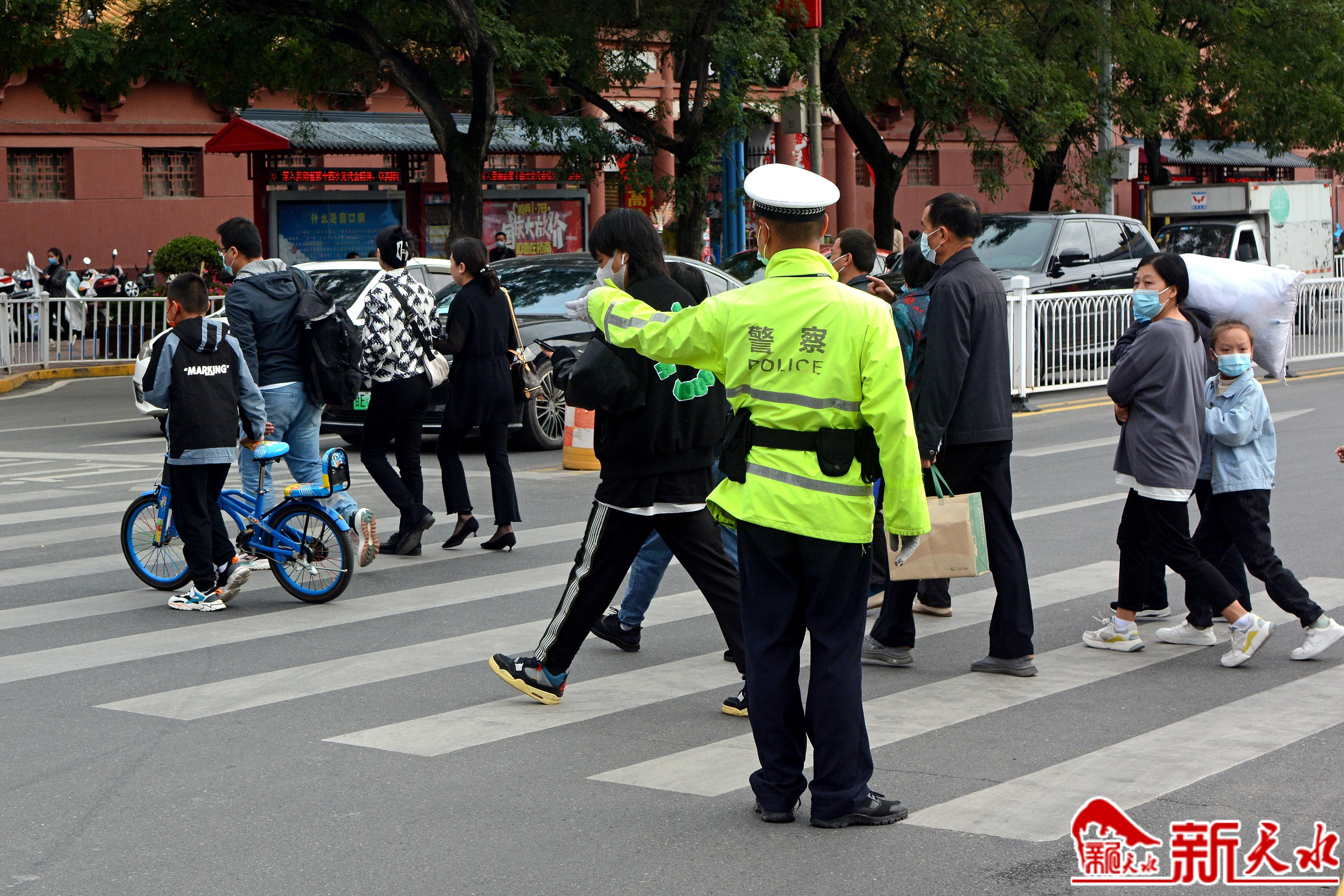 执勤交警维护交通安全