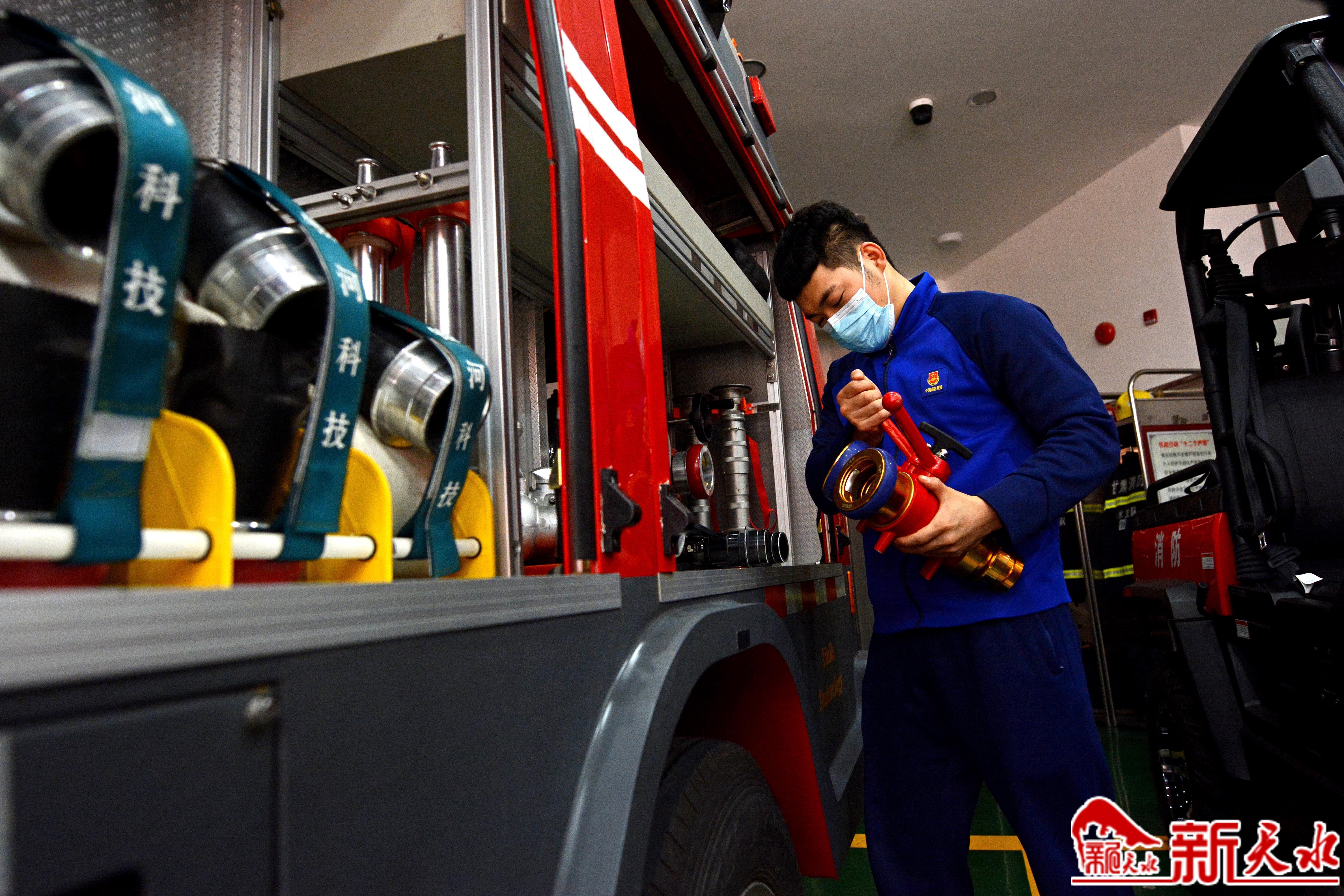 西关古城消防救援站的队员们检修消防设备